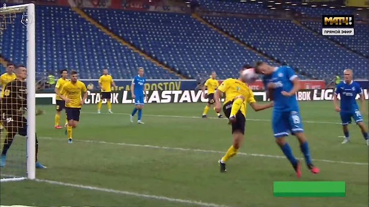 Территориальное преимущество перешло к Ростову, а я отмечаю снова странную игру нашего вратаря — ну серьёзно, вратарь сборной обязан такие мячи ловить: