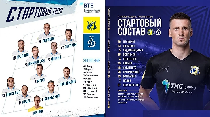 У Ростова же потери были гораздо серьёзнее. Во-первых, из-за травмы отсутствовал опорник Матиас Норманн и нападающий Али Соу, выкупленный у софийского ЦСКА за 3 млн. евро. Во-вторых, главный тренер Валерий Карпин смотрел матч с трибун из-за дисквалификации. В-третьих, Карпин был назначен главным тренером сборной России — работать на два фронта будет очень тяжело. Помимо этого к Ростову присоединились игроки имеющие отношение к Динамо: аренда Комличенко, и покупка Калинина у Урала. И не важно, что Николай забивал на сборах, а Игорь точно подал в Погребняка: оба игрока на мой скромный взгляд очень средние, но об этом далее в разборе.
