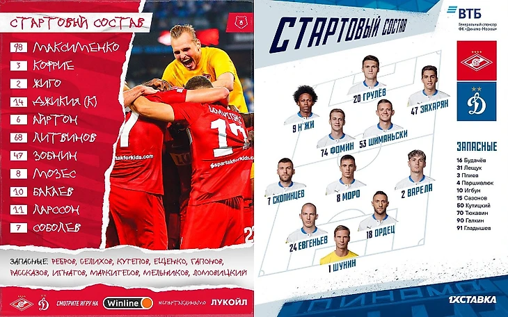 У Спартака же произошли замены в центре полузащиты (на место Умярова переместился Литвинов, пару которому составил другой игрок), справа вместо Бакаева вышел Джордан Ларссон. Сам же Зелимхан перешёл на левый фланг, вместо травмированного Квинси Промеса. Другими словами обе команды не подошли к дерби в оптимальных составах. С одной стороны может сказаться дефицит или отсутствие опыта на неродной позиции, с другой стороны каждый игрок был настроен играть и за себя и за «того парня». Для Клинтона Нжи это вообще был шанс снова заявить о себе Шварцу.