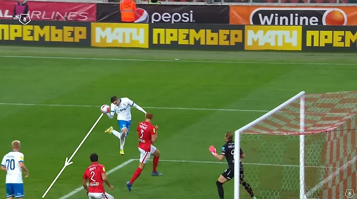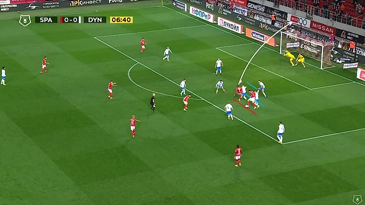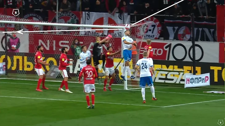«Что было дальше» - есть такое юмористическое шоу в Youtube, но Динамо было не до смеха — Спартак вновь пробрался в нашу штрафную и заработал угловой, который хозяева разыграли в стиле Динамо: наброс на ближнюю штангу, скидка на дальнюю — гол.