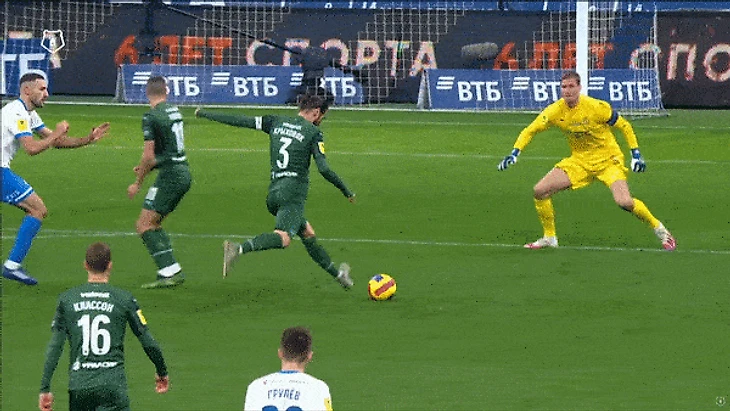 Именно из-за таких потерь самому же Денису и партнёрам приходится постоянно бегать туда-сюда. Не во всех мачтах у нас остаются силы на последние минуты, но не всегда причина этому наш соперник, а мы сами. В последующей атаке Краснодар заработал угловой, после которого Грулёв мог срезать мяч в свои ворота — сегодня с отскоками нам везло. Также нам повезло и на 39 минуте: Кутицкий в одиночку пытается противостоять Крыховяку и Классону, но в итоге швед делает навес в район 11-ти метров, откуда Кайо беспрепятственно бьёт мимо ворот. Удивительно, как раз за разом мы упускаем игроков именно в этой зоне? На последних минутах мы получили право на штрафной, но Шиманьски бесхитростно пробил в Сафонова, а вскоре прозвучал и свисток на перерыв.