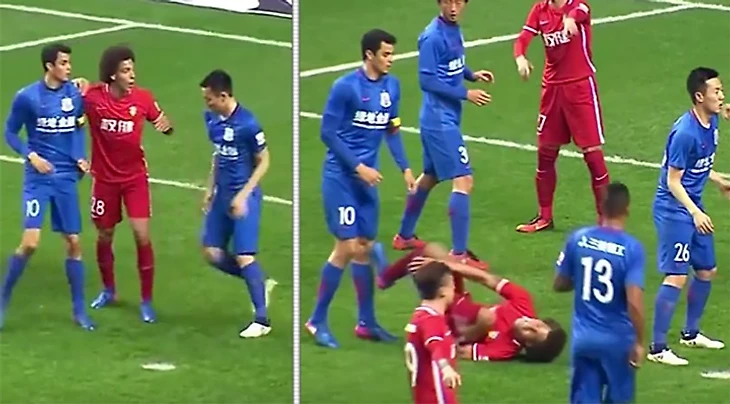 В прошлую субботу «Шанхай Шеньхуа» играл с «Тяньцзинь Цюаньцзянь» (команда Акселя Витцеля и Алешандро Пато), и Шэн надолго запомнит первую встречу со звездным бельгийцем. Пока Тевес готовился подать угловой, Цинь подошел к Витцелю и намеренно (видео отбрасывает любые сомнения) наступил ему на ногу: