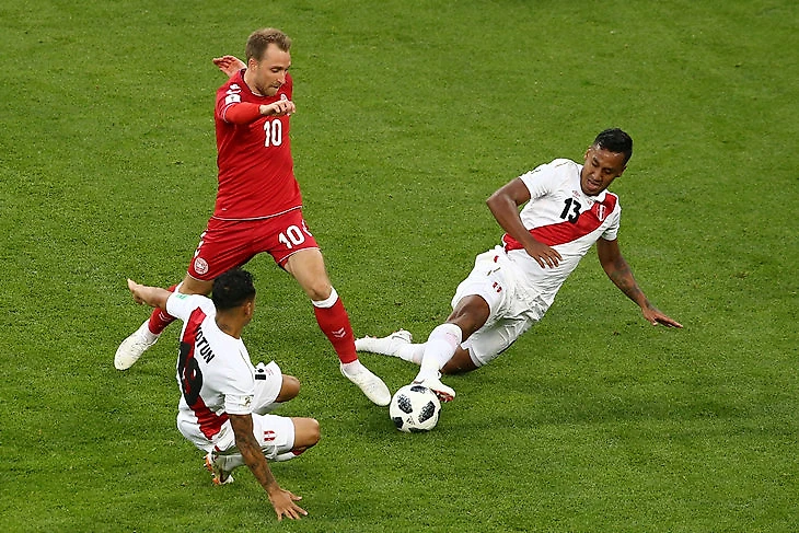 3) техничным и смелым. Благодаря скорости ног Поульсена и Систо (на фото) Дания отстала от Перу всего на одну успешную обводку, но у перуанцев тут предсказуемо полный порядок. Неудивительно: в отборе на чемпионат мира чаще Каррильо и компании в обводку шли лишь бразильцы;