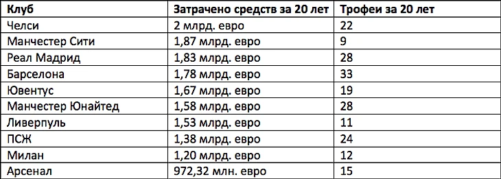 Общий доход Баварии с трансферной кампании за 20 лет, составил 386,28 млн. евро, а расход 877 млн. евро – это на 223 млн. евро меньше, чем потратила английская премьер лига в этом сезоне (по данным этой статьи). Ладно, ладно, у вас, наверное, сейчас возникла мысль: почему я сравниваю клуб с целой лигой? Хорошо, давайте сравним этот показатель с показателями других 10 топ-клубов Европы за те же 20 лет: