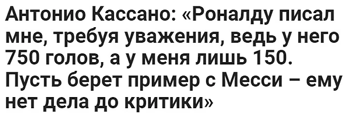 Если найдете хоть один случай, когда Кассано плохо отзывался о Месси, напишите в комменты!