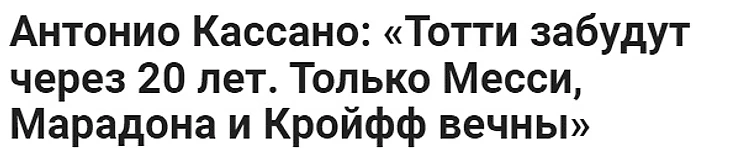 Но есть один человек, который очень нравится Антонио. Это Лео Месси. Мы пытались найти хоть одну критическую цитату о нем – но не смогли! Зато нашли вот это: