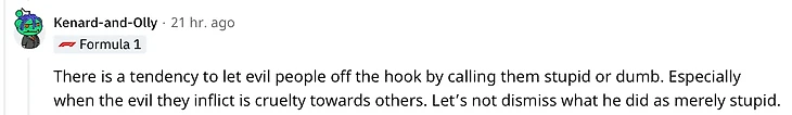 Скандал с российским картингистом и его жестом, разумеется, вырвался далеко за пределы российского интернета. На Reddit (в сабреддите фанатов Формулы-1) новость об Артеме Северюхине собрала больше 1500 комментариев. Мы перевели некоторые из них.