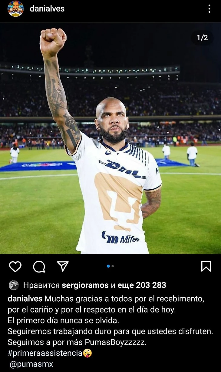 И сразу спас ничью: «Пумас» проигрывал «Масатлану» (да, мы тоже впервые слышим это название), но в конце матча Алвес точно навесил с углового на партнера – 1:1.