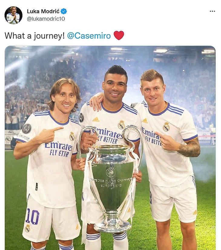 Некоторые обратили внимание, что на церемонии не было Луки Модрича, партнера Каземиро по одному из лучших трио в истории футбола.