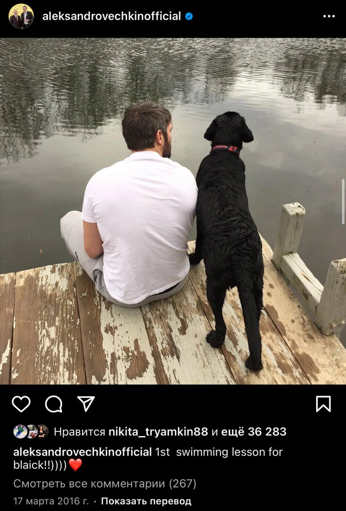 Чтобы вы понимали, как Александр привязан к своей собаке – достаточно взглянуть на милейший пост о первом уроке плавания.