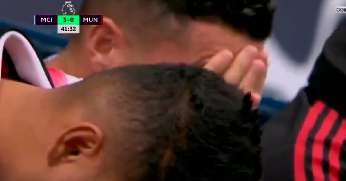 Попало в трансляцию: камеры выхватили лица Роналду и Каземиро на скамейке после четвертого пропущенного гола «МЮ»