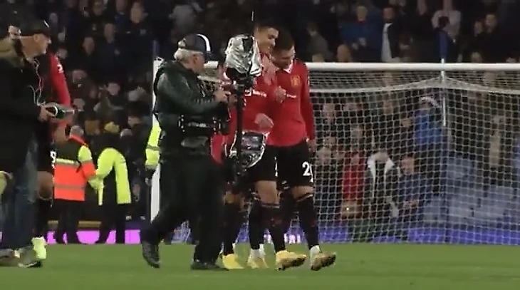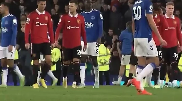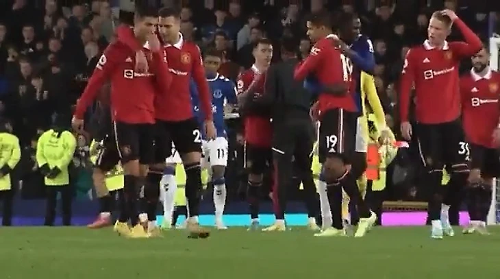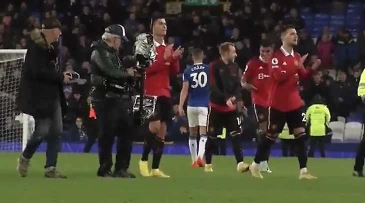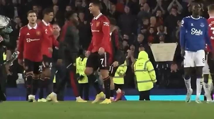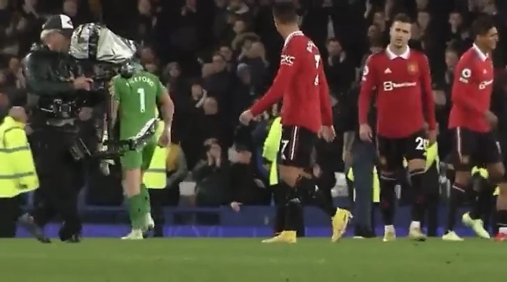 После матча с «Эвертоном» Криштиану Роналду собирался спокойно пойти в раздевалку, но тут его остановил партнер по клубу и сборной Диогу Далот.