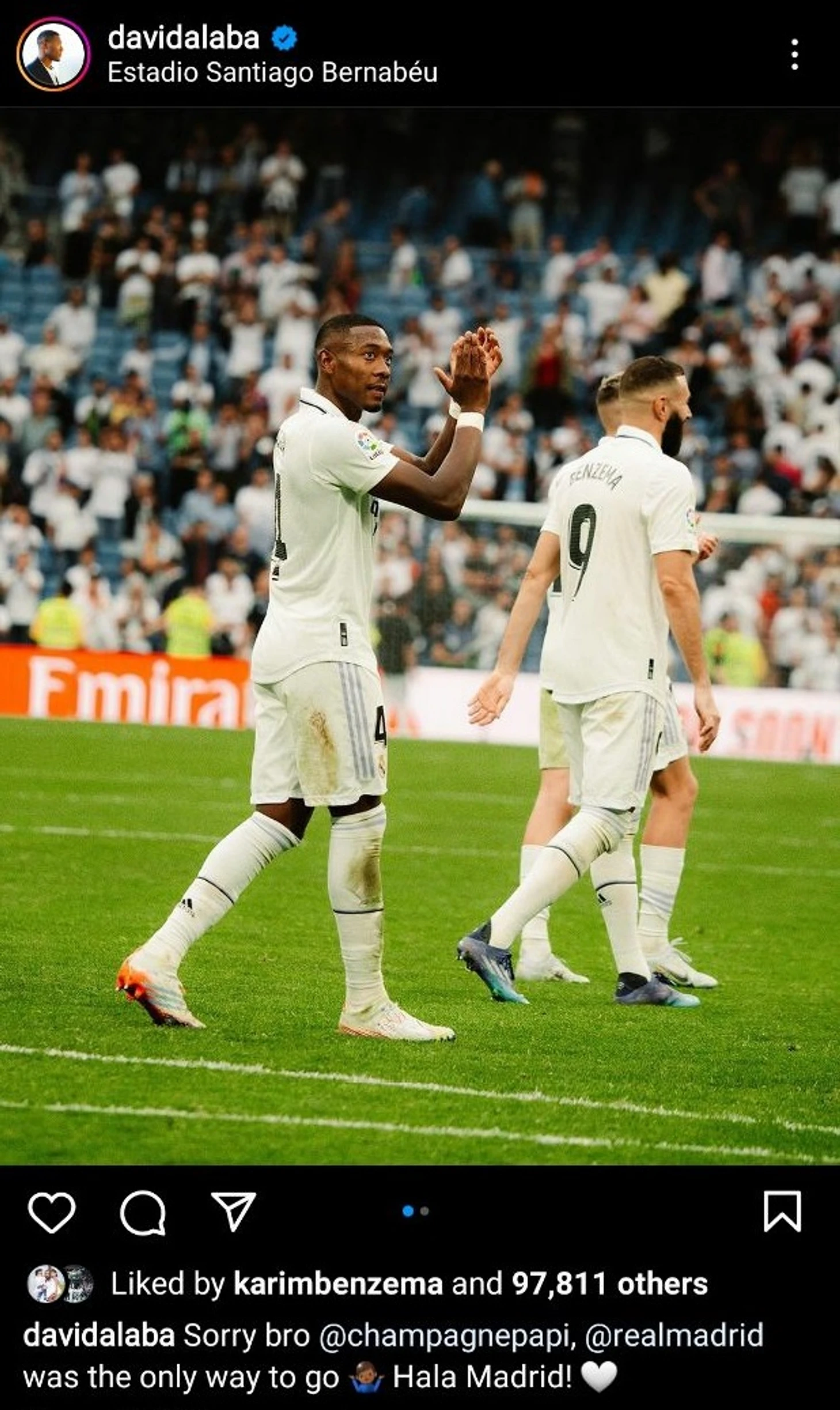А Давид Алаба отметил канадца в своем посте и написал: «Извини, бро, победа «Реала» была единственным выходом».