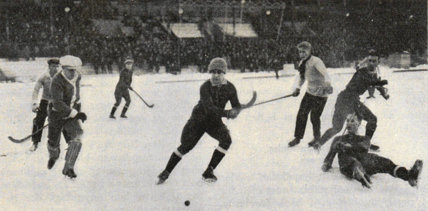 22 февраля 1925 года. Стокгольм. Олимпийский стадион (9 060 зрителей). Финал чемпионата Швеции. «Гёта» (Стокгольм) - «Вестерос» - 7:5 (фото из I тома «Энциклопедии по спорту, гимнастике и жизни на природе», серия «Скандинавская семейная книга», Стокгольм, 1938 год)