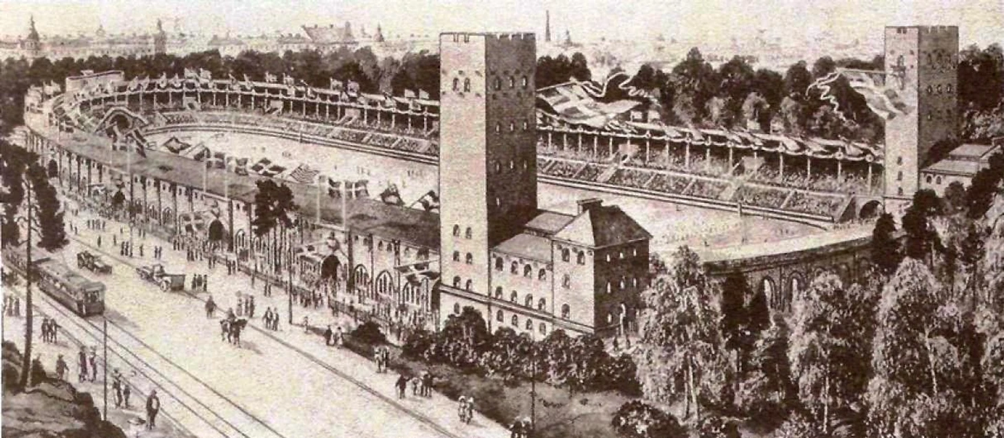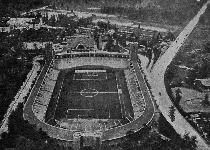 8 октября 1919 год. Стокгольм. Олимпийский стадион (съемка с дирижабля «Бодензее»; фото из журнала «Иллюстриртес шпортблатт» № 17 от 24 апреля 1920 года)