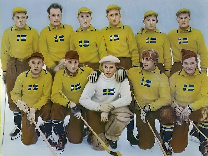 Цветное изображение хоккейной сборной Швеции 1953 года