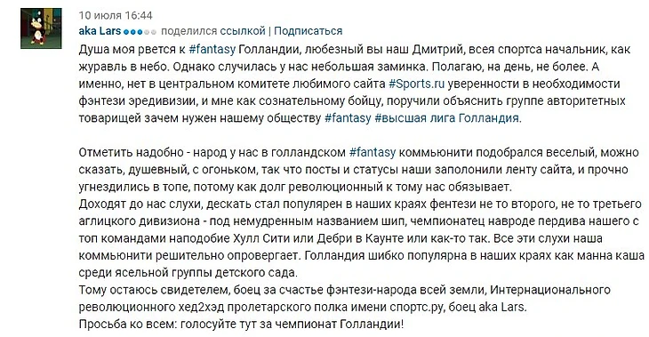 И на десерт – почитаем самые крутые комментарии и статусы от поклонников данного турнира!
