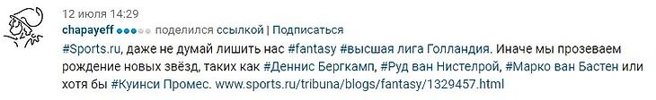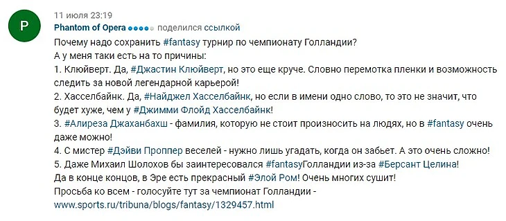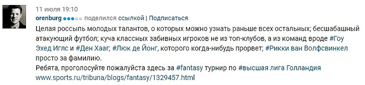 Стоит отметить, что вся информации, написанная выше стала интересной для меня, как и для многих других ребят, именно благодаря fantasy по чемпионату Голландии. Ведь не играя в фэнтази, я бы с большой долей вероятности даже не знал кто такой Дольберг, Йоргенсен и многие другие ребята. Бывает смотришь матчи еврокубков по телевизору, а комментаторы делают смешные ошибки в произношении фамилий игроков голландских клубов, либо путают их, а ты сидишь, и с гордостью улыбаешься.