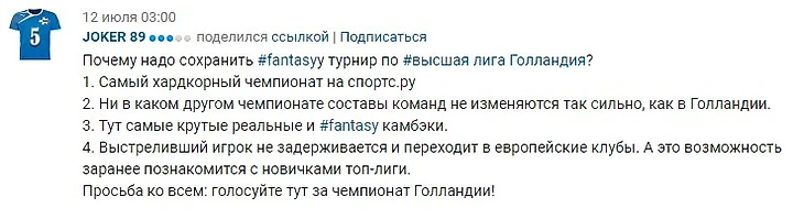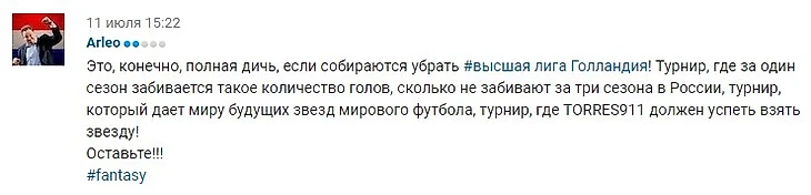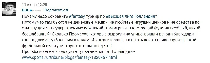 Почему надо сохранить #fantasy турнир по #высшая лига Голландия ?Это Питер Бош, который за один сезон выстроил «Аякс» и получил «премию Ринуса Михелса» в прошлом сезоне. Это Джованни ван Бронкхорст, который сделал голландский топ-клуб «Фейеноорд» чемпионом впервые с прошлого века. А ведь Джио в качестве игрока ни разу не выигрывал титул своей страны, зато ему покорилась эта вершина уже в качестве главного тренера. Дирк Кюйт делающий хет-трик в 36 лет в главном матче сезона в ворота «Хераклеса». Эрик тен Хаг из «Утрехта», который продолжает покорять всю Голландию своими тактическими изысками. Наставник «Витесса» Хенка Фрейзер, который принёс клубу исторический первый трофей – Кубок Голландии.Интересный чемпионат, атакующий,открытый футбол, самобытные команды, кузница молодых талантов, скорости, техника, идеальный плацдарм для попадания в большой клуб. Ежегодно Эредивизи становится трамплином для десятка футболистов и по праву славится своими кадрами для мирового футбола.