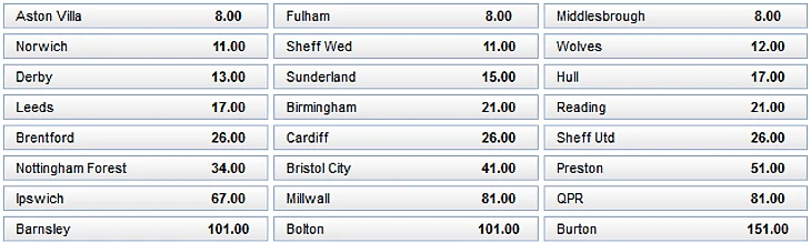 Как видим, первая тройка имеет абсолютно равные показатели (на момент начала написания превью, БК William Hill). И я полностью соглашусь с этим. Астон Вилла, Фулхэм и Мидлсбро выгляд очень сильно. Команды усилились хорошими игроками, имеют сильных тренеров и готовы к промоушену. Правда напрямую выйдут лишь 2 клуба и кому-то придется трепать свои нервы в изнурительных играх плей-офф, где очень часто случаются чудеса. По Норвичу, Шеффилду и Вулвз я также согласен, что они должны быть в топ-6. Но я лишь оговорюсь, что людой из этих клубов вполне может зацепиться за прямой промоушен, если у них не будет больших отрезков с просадками (поверьте, в Чемпионшипе это часто бывает, прошлогодний Лидс подтвердит, как и Дерби сезонами ранее). К слову о Дерби, я бы оценил их чуть ниже, но видимо букмекеры просто дали понять 7 местом, что «бараны» не будут в плей-офф и этого достаточно. Два бывших клуба из АПЛ – Сандерленд и Халл имеют проблемы с составами, много игроков покинули клубы или сделают это в ближайшее время до закрытия трансферного окна. Пожелаем удачи российскому специалисту Леониду Слуцкому. Если ему все-таки удасться втащить Халл Сити в топ-6, то это будет маленьким подвигом. Следующие кандидаты от Лидса до Кардиффа могут быть немного недооценены. К примеру, Рединг, игравший в финале плей-офф и проигравший лишь по пенальти остался практически в неизменном виде. Главный тренер Яп Стам способен со своей командой вновь удивить многих. Советую всем внимательно следить за Шеффилд Юнайтед. Команда очень добротная, я даже рискну провести параллель с Брентфордом, когда они вышли после Лиги 1 и сразу без раскачки наделали шума в Чемпионшипе. Посмотрим на них. Ну и как же без аутсайдеров? Долгие годы в фэнтези главным лузером был Ротерхэм, именно под них многие брали по 3 игрока их оппонентов в туре. Бертон, Болтон и Барнсли. Запомните эти команды.