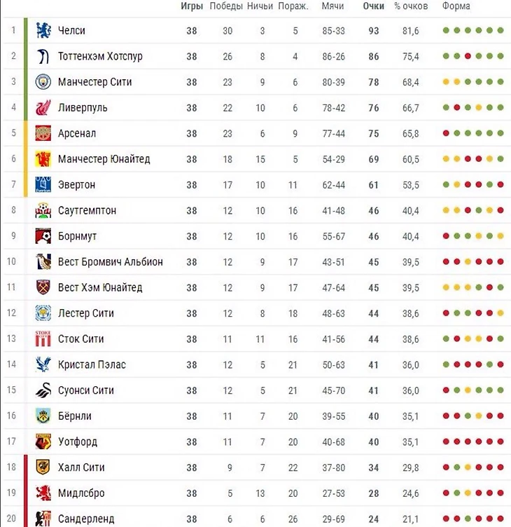 Для начала предлагаю взглянуть на таблицу АПЛ 16/17. Больше всего забивали Тоттенхэм, Челси, Манчестер Сити и Ливерпуль, а меньше всего пропускали снова Тоттенхэм, Манчестер Юнайтед, Челси и Манчестер Сити.