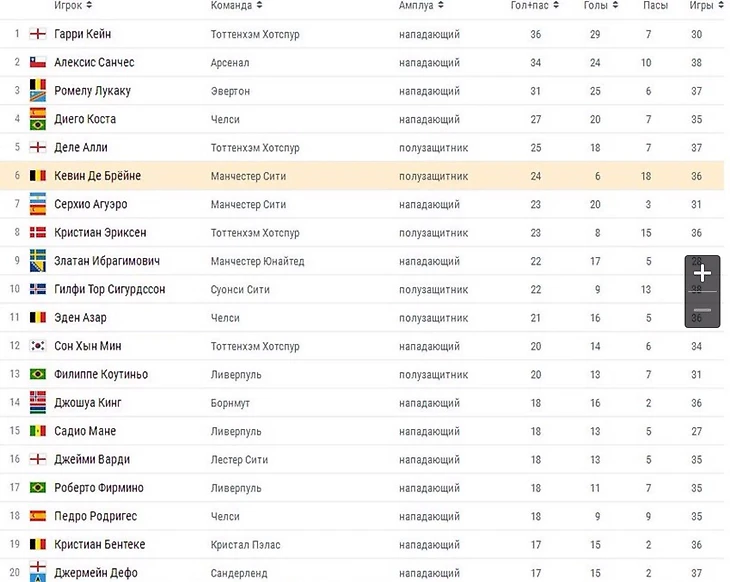 Хорошо, а вот как выглядела таблица по гол+пас. Единственный, кто покинул чемпионат — Ибрагимович, а за всеми остальными нужно пристально наблюдать.