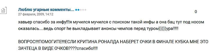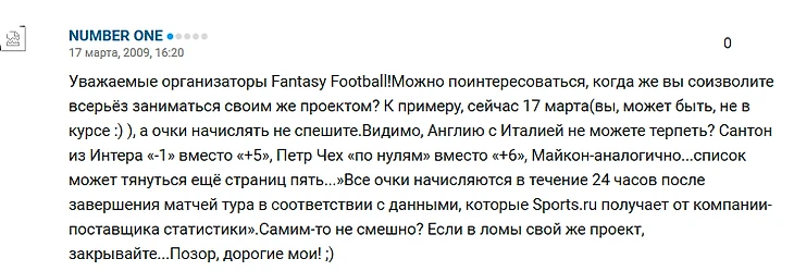 Вот так (по ссылке) выглядел первый пост в блоге, в котором подробно расписано как играть в фэнтези футбол. В комментариях всегда можно найти интересные и смешные посты. Давайте же посмотрим, что люди писали о фэнтези, какие у них были вопросы, что было непонятно.