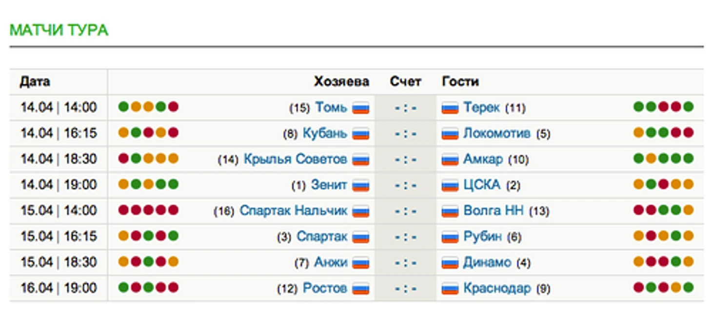 Обновлен блок “Матчи тура”. Теперь под расстановкой вашей команды располагалась информация о текущей форме команд в последних пяти играх чемпионата и место команд в турнире: