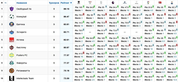 Уже 3-ий год выступления в Н2Н фэнтези турнирах по РПЛ удаются нам на славу. В "Свободном Уме" собралась очень сильная компания людей, реально шарящих в данном чемпе. По итогам завершившегося сезона в нашем активе стало 3 звезды у пользователей (2 - у Осьминога и 1 - у Юры). Кстати, не нарушилась наша старая командная традиция, гласящая о том, что в том чемпе, где одноклубник берет звезду, мы обязательно выигрываем командный турнир. Ранее это случалось в Испании, где я (Lampard17) брал звезду и в Англии, где блестяшку взял Антоха Осьминог.