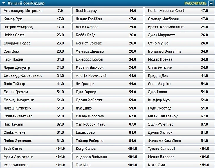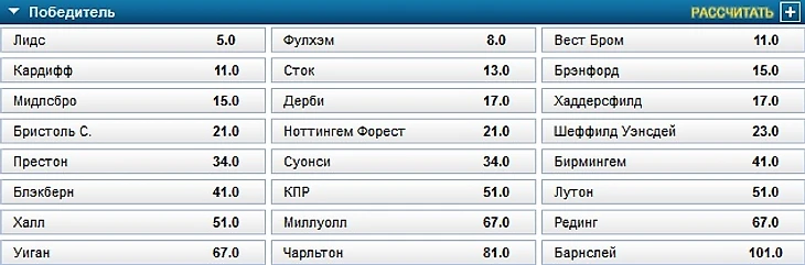 БУКМЕКЕРСКИЕ КОТИРОВКИ НА СЕЗОН