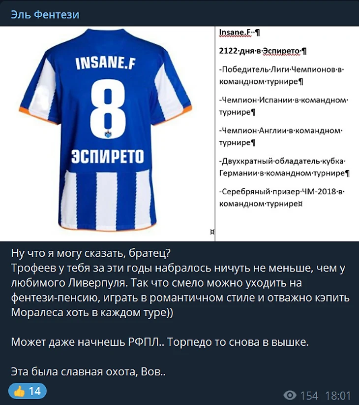 Подводит итоги сезона 2021/2022 футбольный фэнтези-клуб Эспирето. Очень мощный, в целом, сезон, но с одним очень неожиданным провалом. Поехали по порядку: