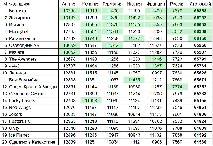 Традиционно главный показатель качества выступления прошедшего сезона для нашей команды - это рейтинг по набранным ФО в топ-6 чемпионатах, в которых мы играем. И в этом сезоне мы выступили очень мощно. Второе место среди всех команд и это с учётом того что мы много не добрали в Испании. Если не учитывать Испанию, то было бы первое место с отрывом.