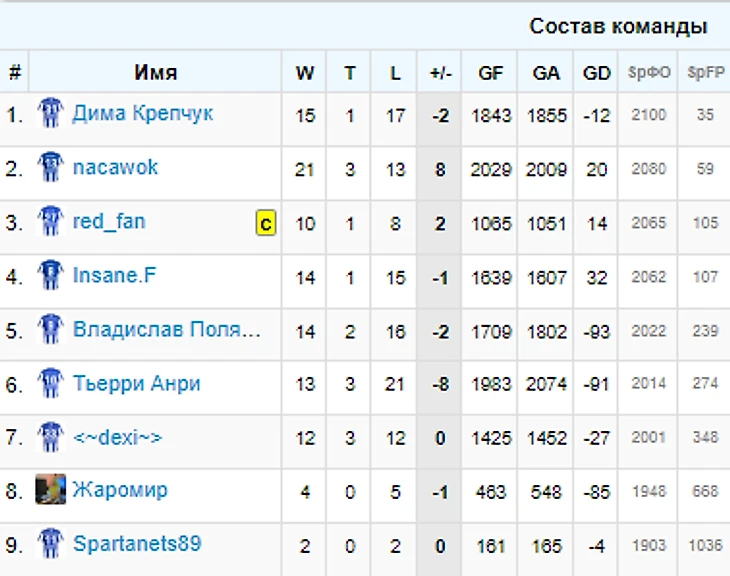 Также в этом сезоне у меня в обойме было 8 составов, так что всегда было кем заменить неподходящий на тур состав.