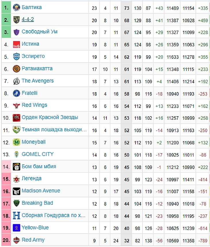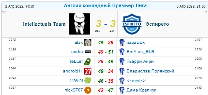 Отдельно как всегда хотелось бы отметить и поблагодарить Андрея(EmAndr_BLR) и Вадима (red_fan) за то, что всегда могли подстраховать с капитанством в минуты дедлайна, когда я не мог быть онлайн или помочь с заменами другим игрокам. Также я уже отмечал Илью (Эдвард Джеймс Кенуэй), его помощь и знания оказались просто неоценимы. Отмечу, что Вадим (red_fan) одержал 25 побед в 34 турах. Такое количество побед на своих досках смогли оформить всего 2 человека в чемпионате, и Вадим можно сказать MVP турнира.