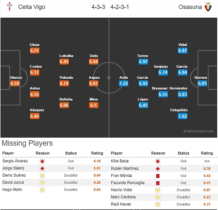 Кого брать: Стрелков. Осасуна на выезде не так устойчива к взлому как в родных стенах, Сельта – вообще крайне нестабильно проводит чемпионат, в том числе с точки зрения игры в обороне.. Короче, копите деньги на Аспаса(8) с Рафиньей(7) или Авилу(7) с Роберто Торресом(6,5)