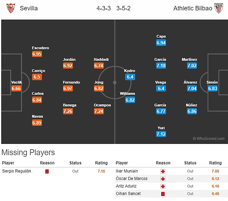 Ну а тренерскому штабу гостей придется что-то мудрить в атакующей линии: Муниаин(7,5) с Адурисом(6,5) - по прежнему в лазарете, плюс к тому мимо заявки пролетели и дисквалифицированный Сансет(5,5) и Иньиго Кордоба(6,5)