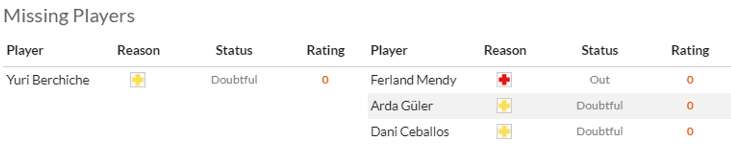 На что обратить внимание: На голкипера Мадрида. После новости о том, что Тибо Куртуа(6,5) пропускает сезон королевский клуб спешно ищет вменяемого кандидата на пост номер один. Пока фаворит - Буну(6) из Севильи, но в шортлисте сливочных есть и Де Хеа и Кейлор Навас и Кепа Аррисабалага. Ну а вдогонку к травме основного вратаря пришли новости о том что Арда Гюлер(7,5) тоже ложится на операцию и пропустит не меньше месяца. Богатые тоже плачут, да.