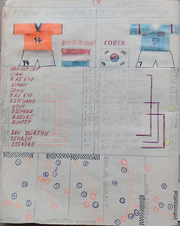 А у сборной Нидерландов была ядерная оранжевая форма и обильная голами игра, шекочущая рецепторы и шипучая как пузырьки шампанского.А у меня была ручка подходящего для раскрашивания голандских футболок цвета и музыкальный слух, помогающий конспектировать хитромудрые корейские фамилии.