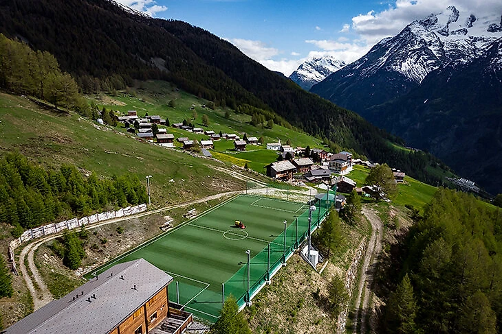 Стадион Оттмара Хитцфельда в Гспоне, Швейцария. Футбол в Альпах