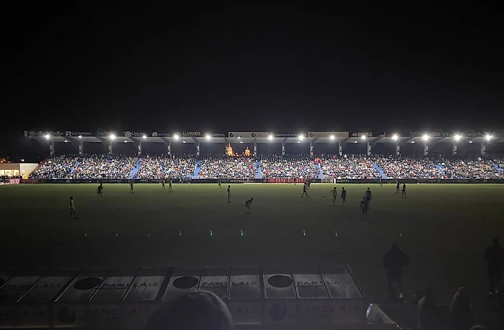 Оно сбоило еще во время матча, но тогда обошлось без серьезных инцидентов. После финального свистка свет выключился совсем: спасли дополнительные фонари на стадионе.