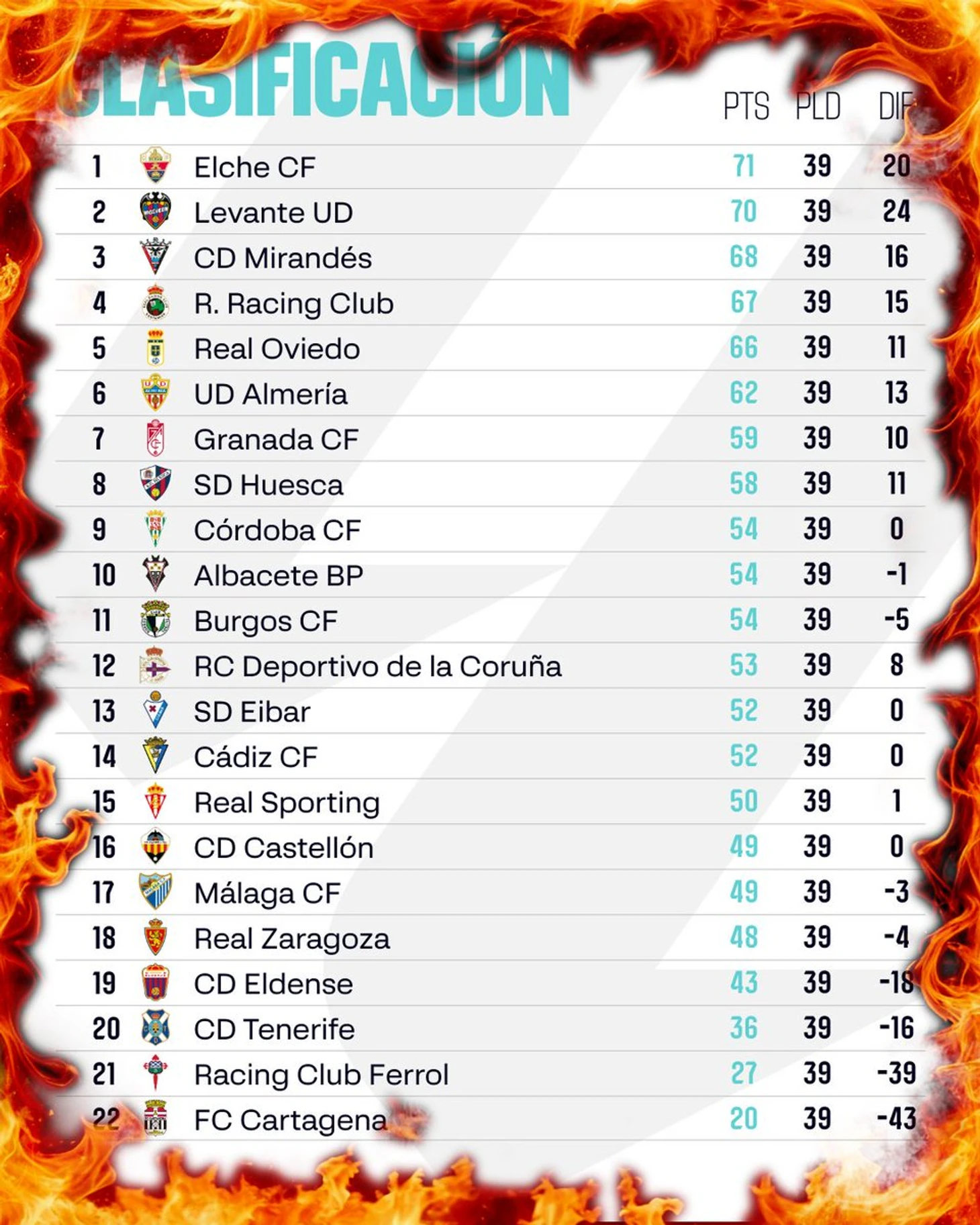 Не спас даже Альваро Сервера: тренер пришел в декабре и даже подарил надежду, но в последних турах команда снова забарахлила. Пять ничьих подряд стали приговором для «Тенерифе». Будущее Серверы пока неизвестно, но сам Альваро уже настраивается на продолжение работы и возвращение в Сегунду. Теперь единственный клуб, который может выплыть из опасной зоны, – «Эльденсе», но там тоже шансы тают с каждым матчем.