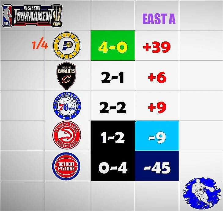 Кливленд в отличии от Пэйсерс ещё своё главное слово в Кубке не сказал, но выездная победа над Филадельфией в овертайме им подарила шанс на путёвку со второго места в группе. Правда для увеличения этих шансов нужно во вторник максимально крупно побеждать Атланту у себя дома. Эти клубы идут рядом в турнирной таблице (8-7 Кавз и 7-7 Хокс) регулярки и у Атланты Квина Снайдера есть мотивация улучшить свой трек и лишить непосредственных конкурентов и хайпа, и лишнего топлива для последующего продвижения