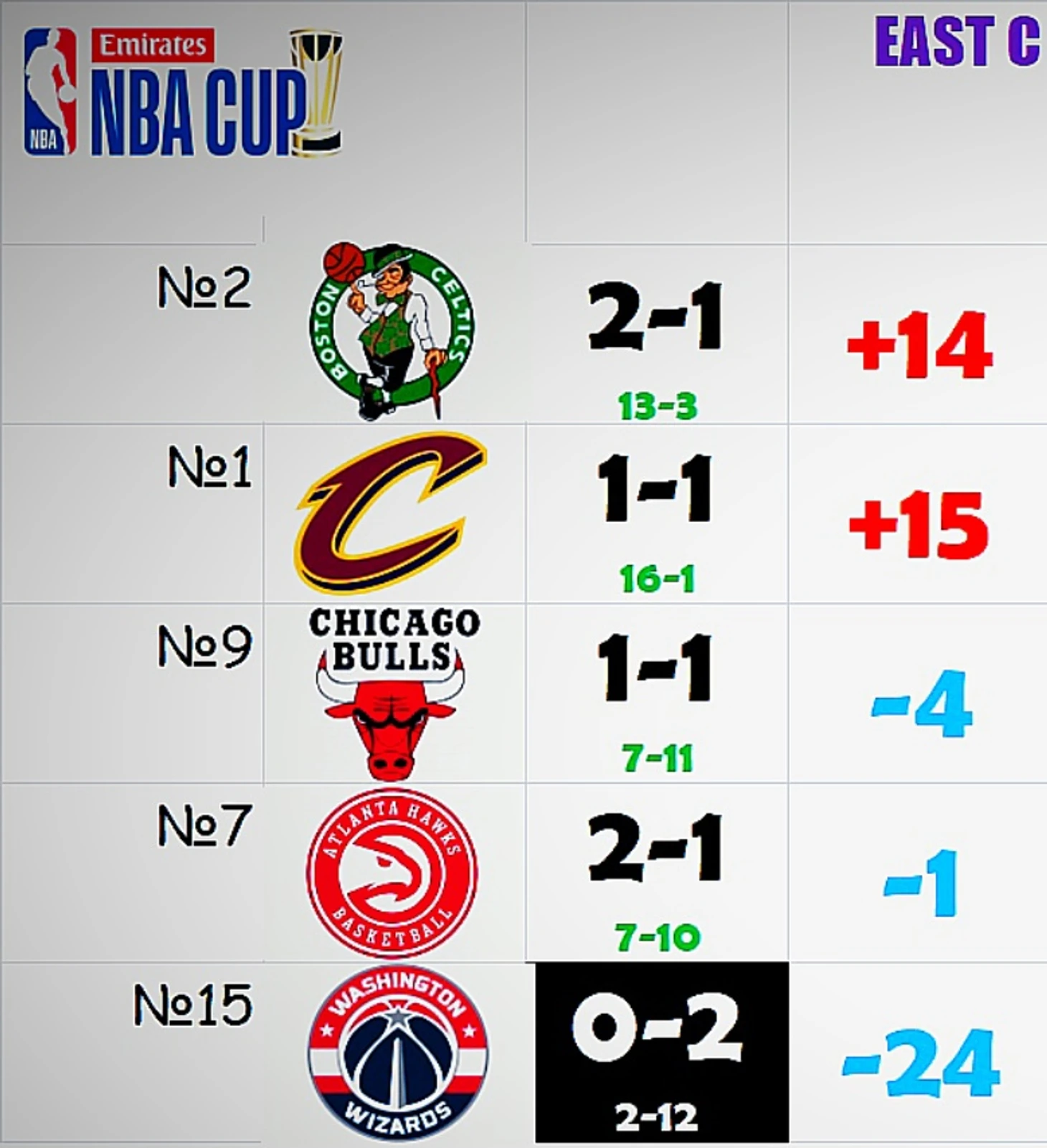 На востоке в группе «А» уже три отщепенца почти стопроцентно отмазались от участия в «декабрьских нокаутах». Можно конечно предположить, что отсутствие давления их расслабит и поможет устроить Нью-Йорку и Орландо. Но до сих пор никто не выходил в следующий раунд с результатом 2-2. Даже 3-1 не всегда гарантирует первое место. Тем более – с учетом последней игры в группе, которую в декабре проведут лидеры между собой – кто-то из них обязательно получит в свой актив третью победу и 3-1 в резюме. Значит результат (2-2) не дает ни одного шанса никому из троицы (Шарлотт, Бруклин и 76-ы) на 1/4 финала кубка.