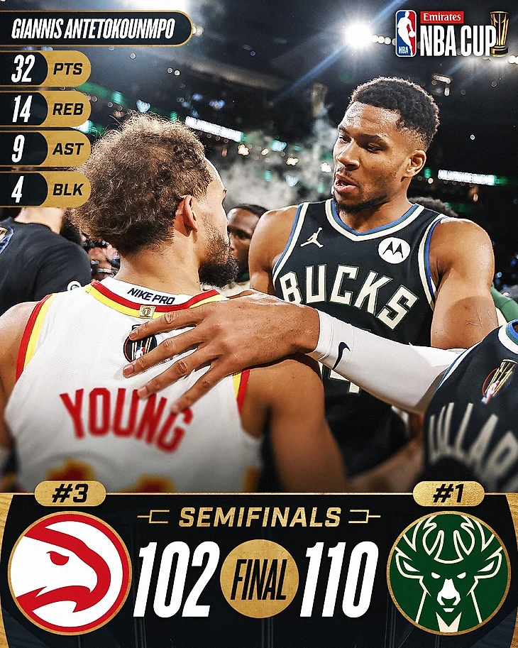Полуфиналы были непростые. Соперники (каждый в своей конференции) потестил горячих на момент оппонентов. Восстающему из ямы разочарования Милуоки досталась нашедшая в своей игре неплохой баланс Атланта и переломить ход этого поединка в свою пользу олени смогли только в четвертой четверти, где кроме очень эффективного и ставшего под влиянием Дока более разумного в выборе своих бросков Янниса мы снова (и не в первый раз по ходу Кубка) увидели Лилларда, решающего много ключевых эпизодов – и не только в атаке, к примеру: перехват у вышедшего на пустое кольцо в концовке Клинта Капеллы. Это почти такое же ключевое защитное владение, как и блок Янниса тому же Клинту Капелле (пусть и менее эффектное), но это же Дэйм!.. Он пытается защищаться и страхует большого под кольцом! Это уже невероятно)