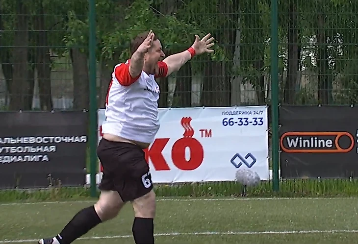 Весь матч футбол был похож на чемпионат федерации Хабаровска. Да это и был матч федерации, только вывеска другая. На 61й минуте «Гамбит» берет красный мяч, через 30 секунд защитник «мясников» Ворон прибил «шахматистов». 3:0, победное шампанское, и ливень зарядивший сразу после гола.