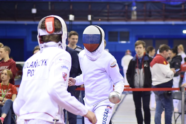 Во второй день соревновались и шпажисты. Лучшим из Россиян стал самый молодой член команды, чемпион мира среди юниоров Егор Гужиев – 8 место. Для него непроходимым стал Войцех Коланчик. Егор уступил сначала ему в группе 5:4, а после и за вход в четверку 13:15
