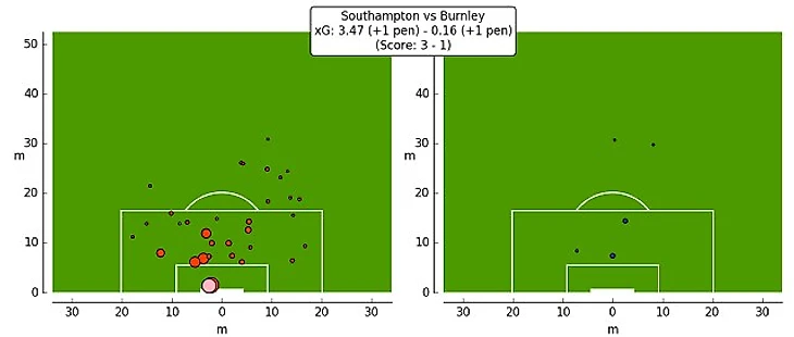 Неудачная защита «Бернли». Команда Дайча, несмотря на статус аутсайдера, редко позволяет себя возить настолько, насколько это удалось «Саутгемптону». Им не в первой уступать по владению (неудивительно, что «святые» контролировали мяч 64,5% времени), они входят в число команд, допускающих наиболее количество ударов, однако «Бернли» редко позволяет сопернику иметь удары такого качества (по меркам андердога АПЛ они имеют нормальный показатель допущенных xG). Но «Сотону» было позволено слишком много – хозяева не просто нанесли 34 удара (похоже на рекорд сезона), а сделали это с достаточным качеством. Больше 20 ударов было нанесено из danger zone, было создано 4 явных голевых момента (не считая пенальти), а показатели xG и вовсе походят на рекорд «Саутгемптона» за новейшую историю.
