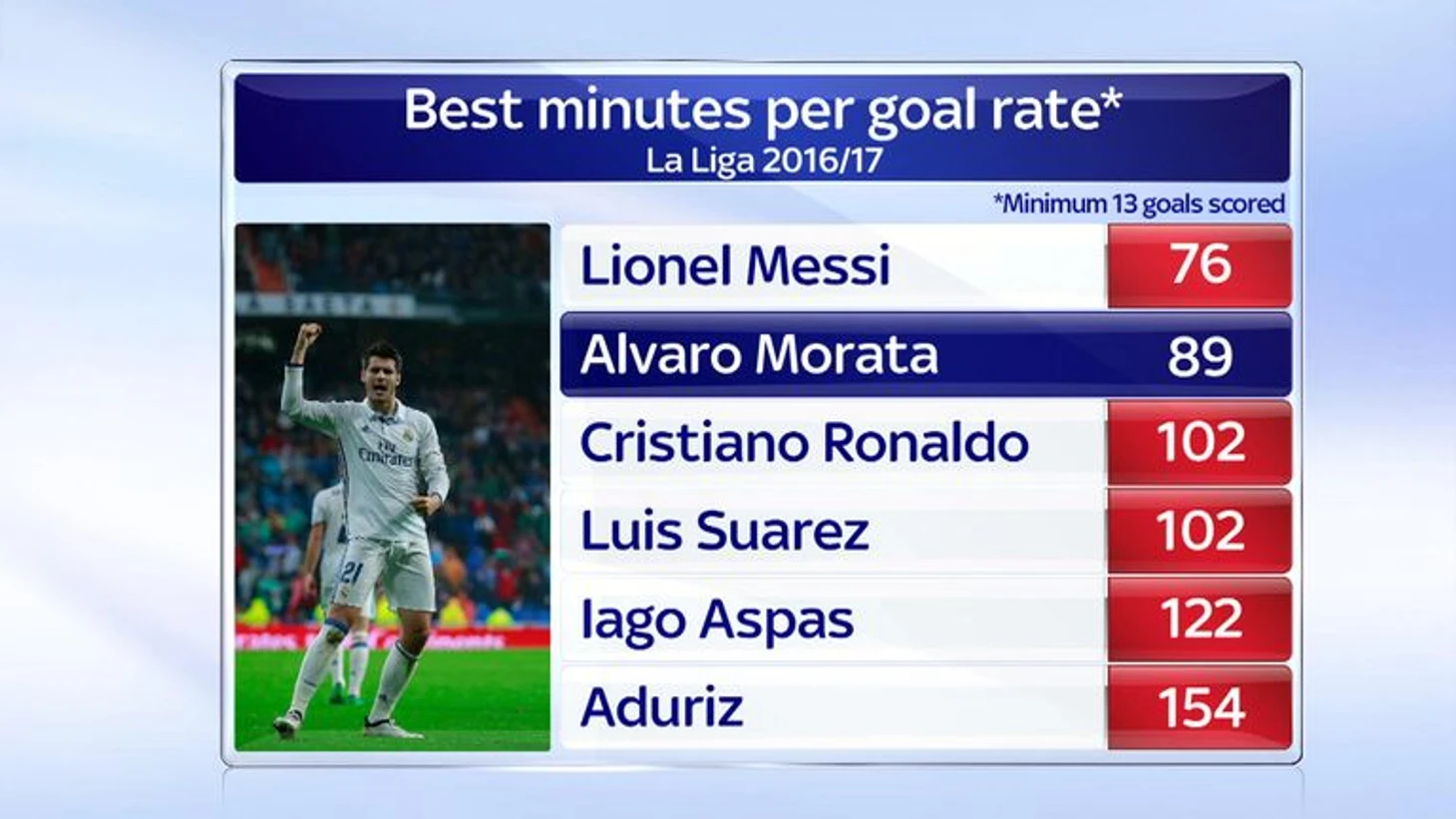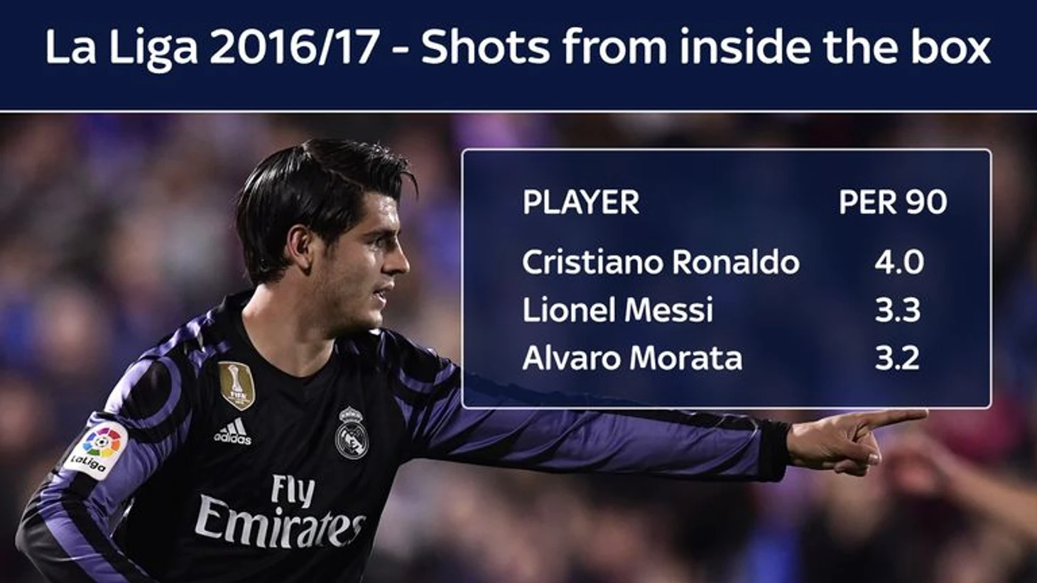 Еще раз – у Мораты на это ушло в два с половиной раза меньше времени. Но это одновременно аргумент за и против него. Нет достаточного количества примеров прямого перехода из запаса в основу топ-клуба, поэтому у нас большой простор для фантазий. С одной стороны, статистика Мораты подкрепляется ударами из хороших позиций (а это один из главных признаков того, что сильная статистика в старом клубе перенесется в новый). С другой, непонятно, где заканчивается великолепие Альваро и начинается эффект запасного.