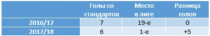 «Сити» пока явно уступает «Юнайтед» в реализации стандартов. «МЮ» больше всех в лиге забивает после стандартов и допускает меньше всех ударов после них. Самое удивительное – их прогресс с прошлого сезона.