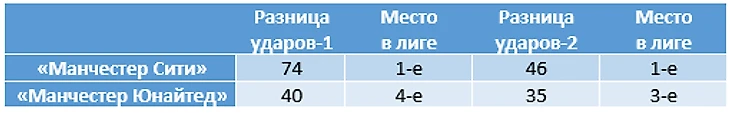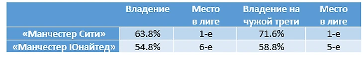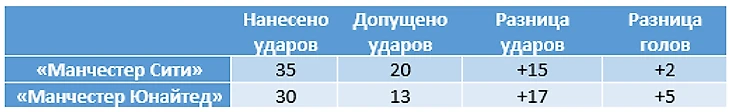 Мои субъективные ощущения: цифры даже слегка недооценивают «Сити». Из-за их терпеливого стиля некоторые хорошие моменты не завершились ударами (и не попали в таблицы). «МЮ», наоборот, поднабрал лишнего за счет мощной игры в конце матчей. Это здорово, но круче быть стабильной командой.